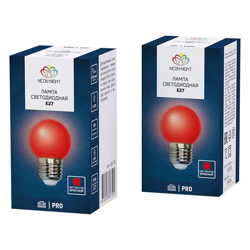 Лампа светодиодная 1Вт шар d45 5LED красн. E27 Neon-Night 405-112
