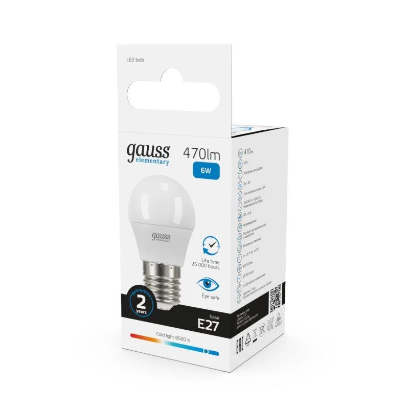 Лампа светодиодная Elementary 6Вт P45 шар 6500К холод. бел. E27 470лм GAUSS 53236