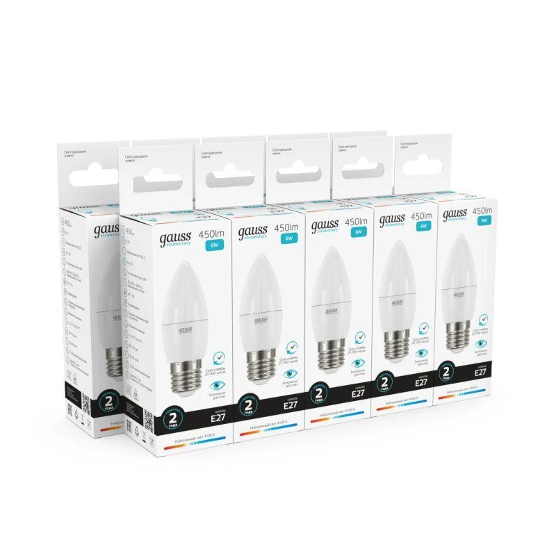 Лампа светодиодная Elementary 6Вт свеча 4100К нейтр. бел. E27 450лм GAUSS 33226