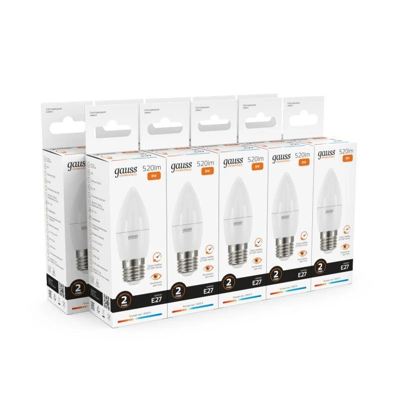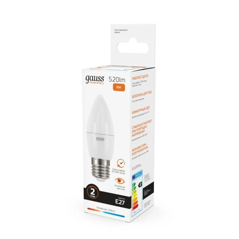 Лампа светодиодная Elementary 8Вт свеча 3000К тепл. бел. E27 520лм GAUSS 33218