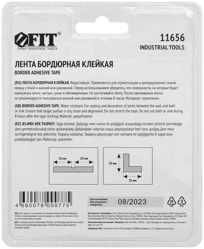 Лента бордюрная клейкая водостойкая 20ммх20ммх3.35м FIT 11656