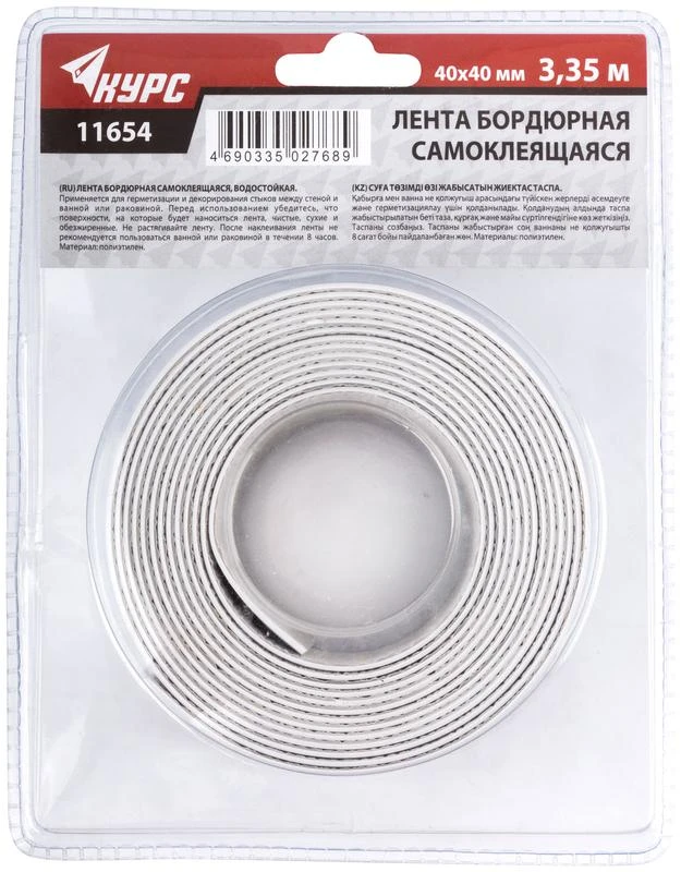 Лента бордюрная клейкая водостойкая 40ммх40ммх3.35м КУРС 11654