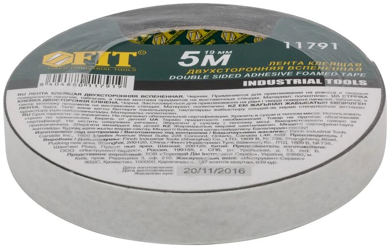 Лента клеящая 2-х сторонняя монтажная на вспененной основе 19ммх5м черн. FIT 11791