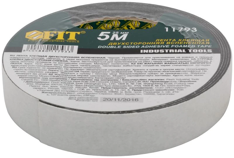 Лента клеящая 2-х сторонняя монтажная на вспененной основе 25ммх5м черн. FIT 11793