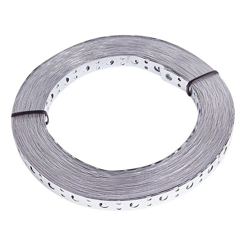 Представляет собой прямую стальную ленту с перфорацией. Отличается высокой прочностью на излом и гибкостью, поэтому может принимать нестандартную форму. Цинковое покрытие защищает ленту от коррозии и продлевает срок ее службы. Монтируется при помощи стандартных гвоздей и шурупов. Ножницами по металлу можно отрезать фрагмент ленты любой длины.