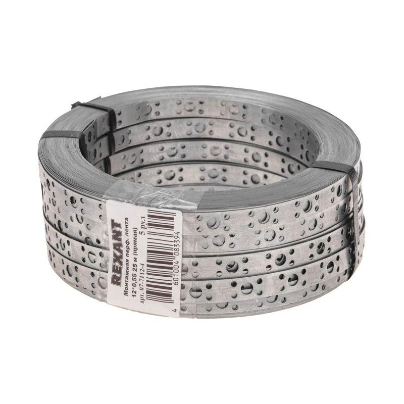 Лента монтажная перфорированная 12х0.55мм прямая полоса оцинк. (уп.25м) Rexant 07-7112-4