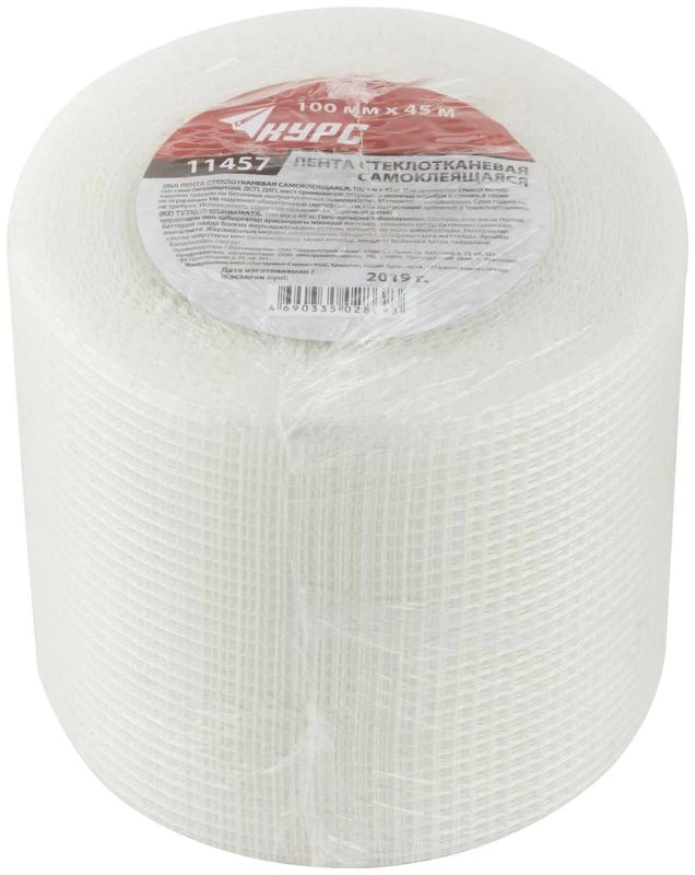 Лента стеклотканевая клейкая 100ммх45м КУРС 11457