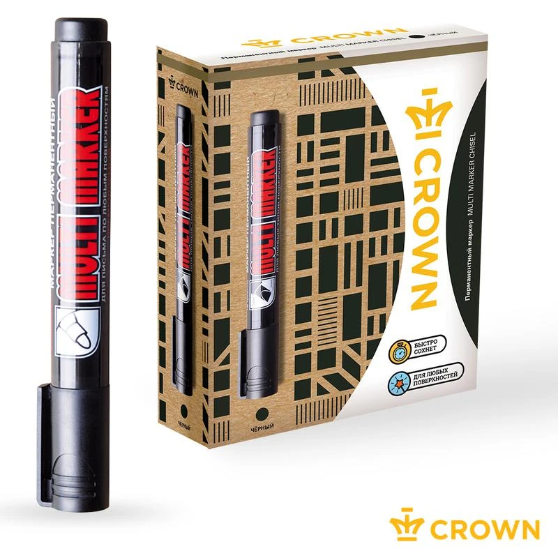 Перманентный маркер Crown "Multi Marker " - универсальное решение для маркировки на всех типах поверхностей: металл, дерево, резина, бетон/камень/кирпич, стекло, пленка, картон и др.