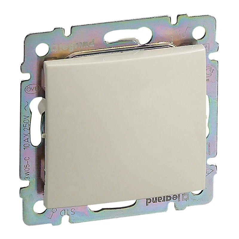 Представляет собой механизм переключателя с одной клавишей. Цвета слоновой кости. Изготовлен из пластика. Монтируется под штукатурку.
