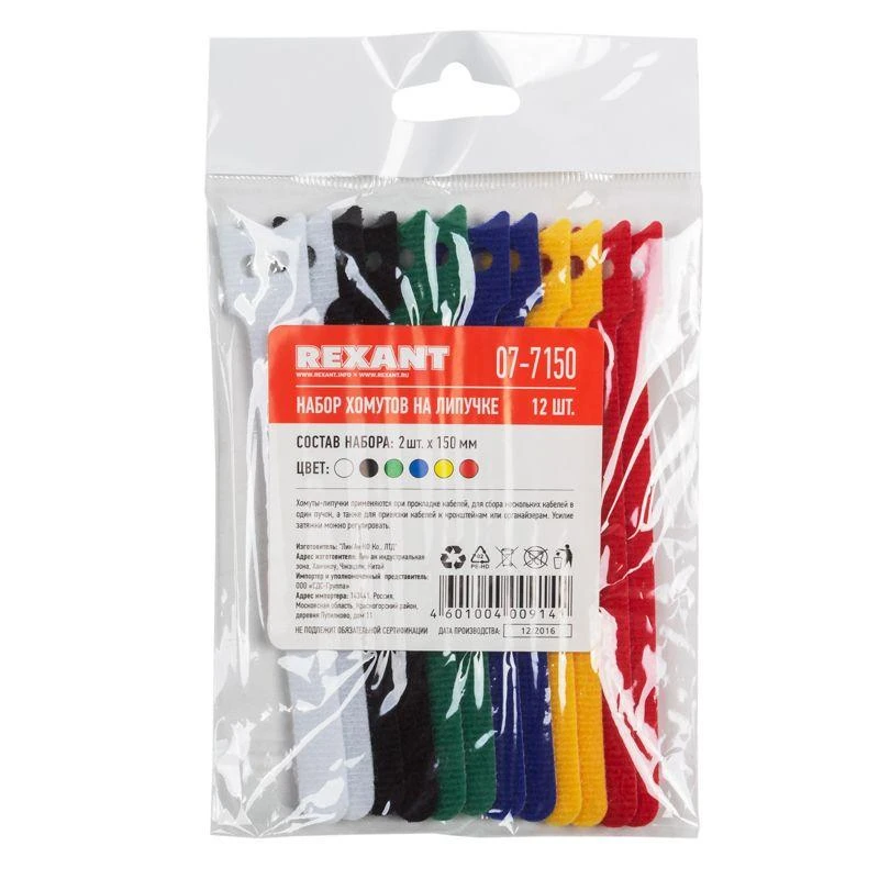 Набор хомутов MGT-150 12х150 многораз. на липучке разноцвет. 12шт. Rexant 07-7150