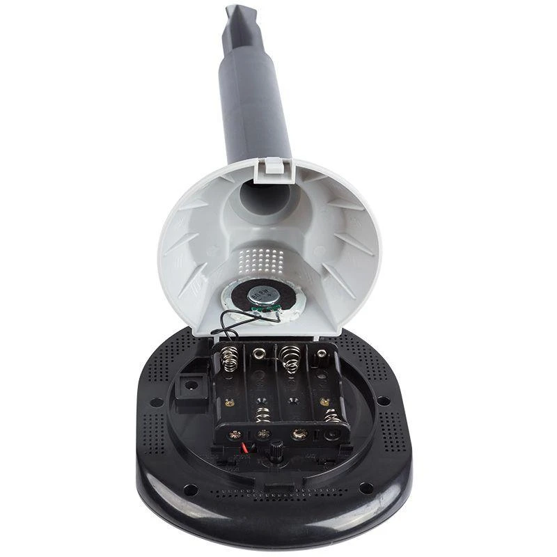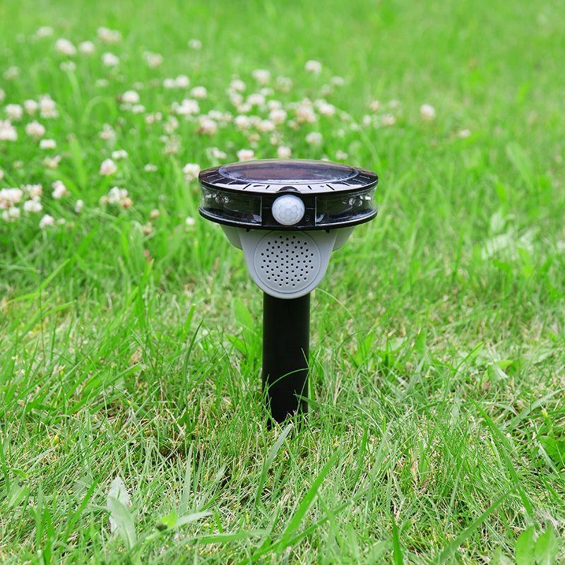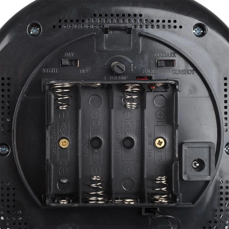 При срабатывании датчика отпугиватель имитирует звук лая собаки, выстрела из ружья или клич хищной птицы (в зависимости от выбранного вами режима). Также устройство отпугивает животных светом благодаря установленным на корпусе ярким диодам.