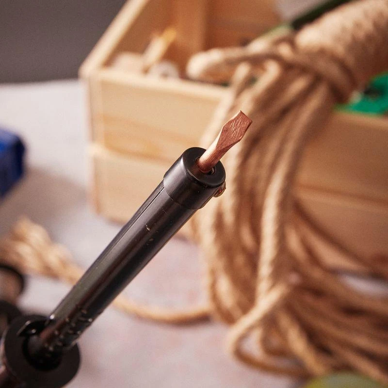 Электрический паяльник со спиральным нагревателем (ЭПСН) питается напрямую от сети 220 В, рабочая температура рабочего стержня 340...400 °С, время разогрева до рабочей температуры — 7 мин., класс защиты — II
