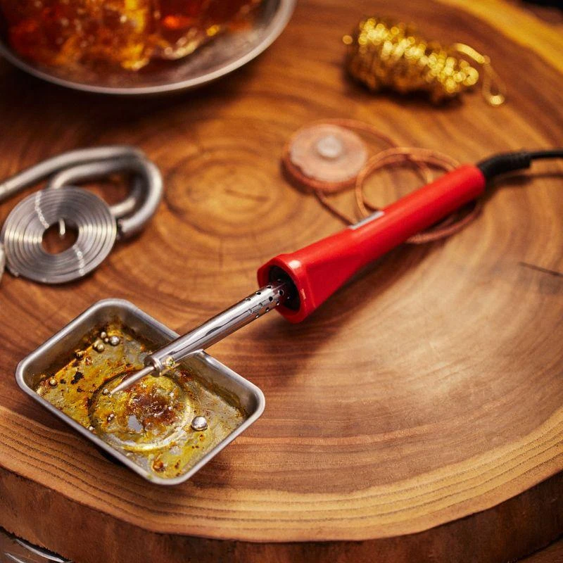 Паяльник выполнен с керамическим нагревательным элементом, поэтому нагревается быстрее чем, нихромовый и при бережном отношении прослужит много долгих лет. Долговечное жало паяльника состоит из медного сердечника, покрытого слоем электролитически осажденного железа. Рабочая часть жала электрохимически покрыта слоем олова (что обеспечивает облуживаемость), а остальная поверхность — хромирована.