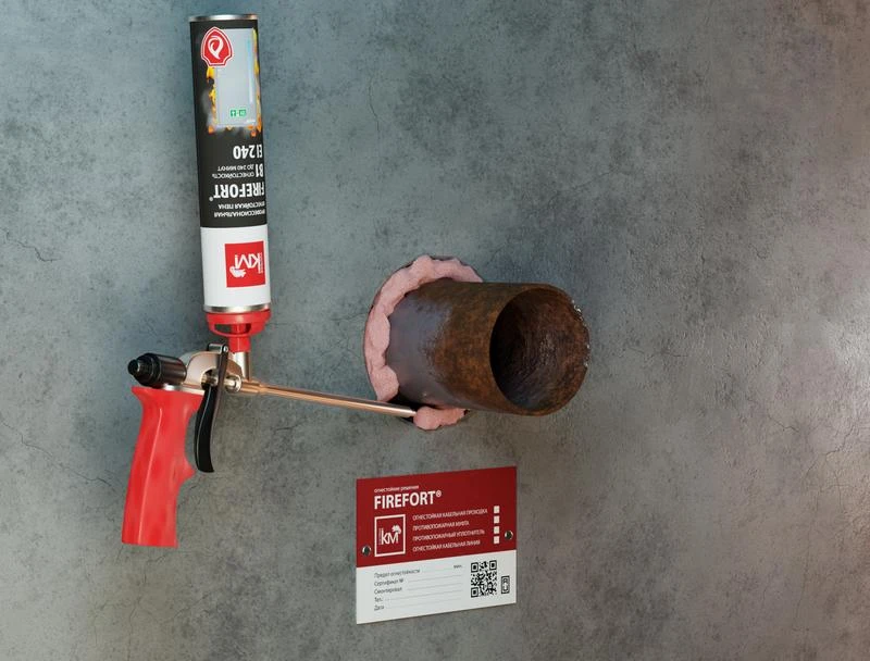 Профессиональная огнестойкая однокомпонентная пена В1 от ТМ СИСТЕМА КМ® отвечает стандартам DIN 4102-1/В-1 с степенью огнестойкости 240 минут. Выступает в роли монтажного материала и наполнителя. Затвердевает под воздействием влажности воздуха. Обладает свойствами огнестойкости (В1) и самозатухания. Используется в местах с повышенными требованиями к огнестойкости строительных материалов. Применяется в качестве вспомогательного средства для монтажа огнестойких кабельных проходок. Не стекает вниз при нанесении. Рекомендуется для изоляции электросоединений, трубопроводов, заполнения различных строительных пустот, щелей и трещин. Однородная структура состава, плотностью 25-30 кг/м3, обеспечивает отличную адгезию к рабочей поверхности. Максимально эффективное сцепление достигается при температуре от 0 до 30°С. Пена серии FIREFORT® устойчива ко всем погодным условиям, пару и влаге, а также морскому климату. Термостойкость от -40°С до +100°С. Готова к использованию вместе со стандартным пистолетом для пены.
