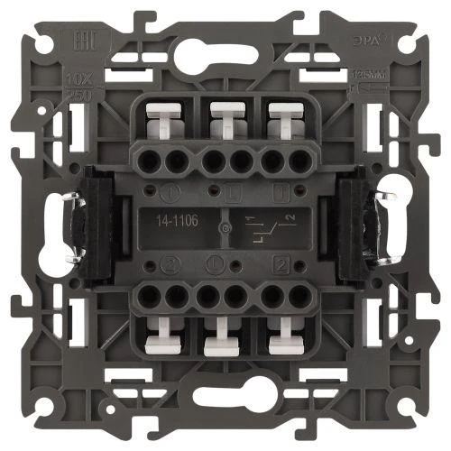 Переключатель 2-клавишный проходной серии Эра Elegance цвет белый матовый 14-1106-01М. Характеристики 10А 250В. Оснащён автоматическими клеммами для надёжной фиксации жил кабеля в механизме. Рамки приобретаются отдельно.