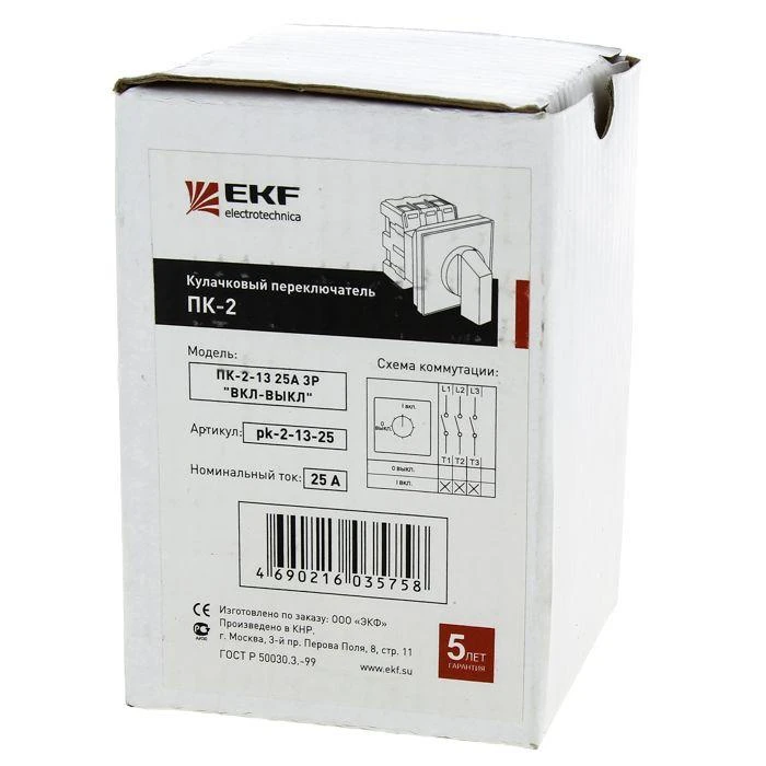 Переключатель кулачковый ПК-2-13 3П 63А "ВКЛ-ВЫКЛ" EKF pk-2-13-63