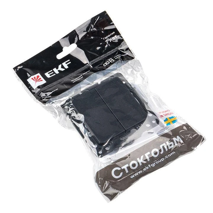 Переключатель проходной 2-кл. Стокгольм 10А механизм черн. PROxima EKF EZV10-027-10