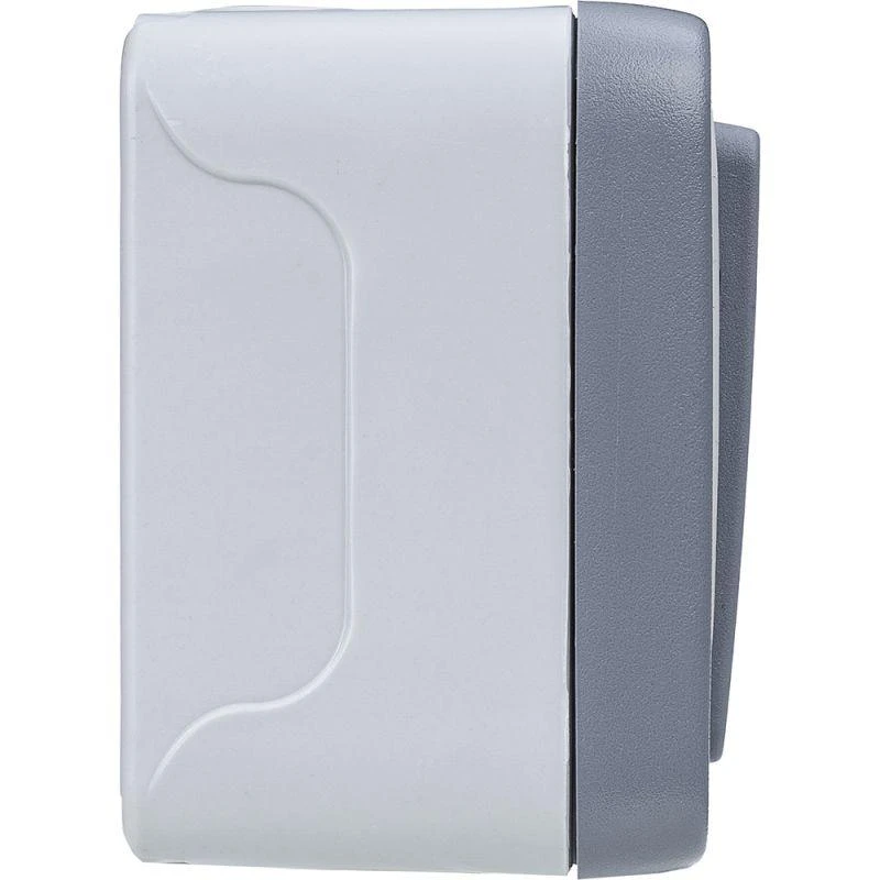 Изготовлен из пластика, бледно-серого цвета. Одноклавишный. 10 А. 250 В. Для наружного монтажа на поверхности.