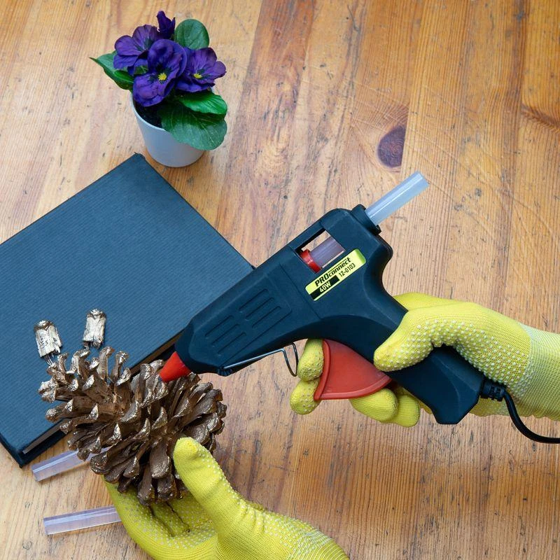 Пистолет клеевой 40 Вт большой (в блистере) предназначен для прочной фиксации поверхностей с помощью расплавленной клеевой массы. Заправляется он специальным клеевым стержнем диаметром 11 мм. Корпус клеевого пистолета изготовлен из ударопрочной пластмассы и имеет скобу для надежной установки в нерабочем положении. Принцип работы: клеевой стержень плавится в металлической камере с помощью нагревательного устройства и для точного дозирования при нажатии на курок подаётся из сопла на склеиваемую поверхность. Мощность пистолета в 40 Вт позволяет очень быстро разогреть клеевой стержень и получать удовольствие от быстрой и бесперебойной работы. С его помощью вы сможете склеить: дерево, пластик, резину, кожу, стекло, металлы (их лучше перед работой разогревать феном), ткань, пенопласт, керамику, картон, бумагу, цветы или что-то другое. Используется как в домашних условиях, так и на производстве: для монтажа электрических плат, декорирования, изготовления упаковочной и сувенирной продукции, при прокладке кабеля сетей фиксированной телефонной связи и сетей передачи данных, при производстве багетов и картинных рам. Клеевой стержень в комплекте. Два клеевых стержня в комплекте.