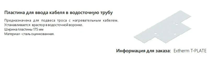 Пластина для подвеса кабеля в водосточной трубе/воронке Extherm T-PLATE