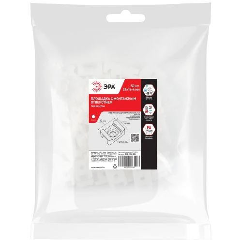 Площадка под хомуты 22х16мм с монтажным отверст. М4 NO-225-305 бел. (уп.50шт) Эра Б0066716