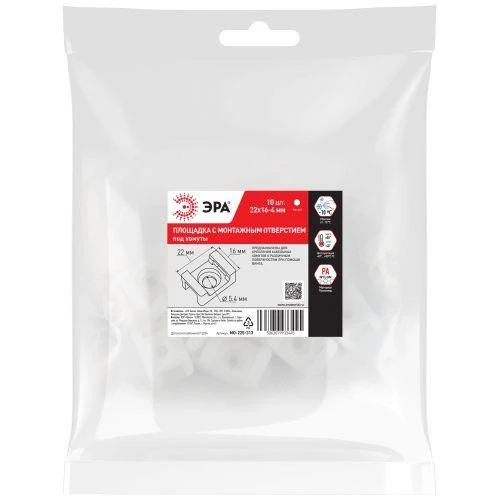Площадка под хомуты 22х16мм с монтажным отверст. М4 NO-225-313 бел. (уп.10шт) Эра Б0066687
