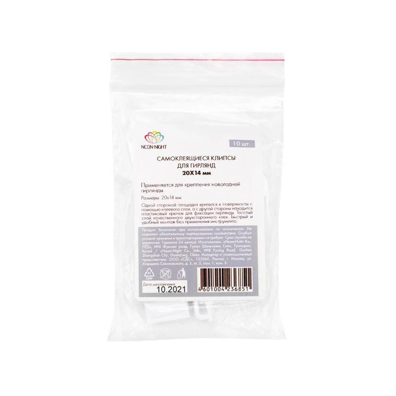 Площадка самоклеящаяся c клипсой 20х14мм для крепления новогодней гирлянды (уп.10шт) Neon-Night 071-2320-10