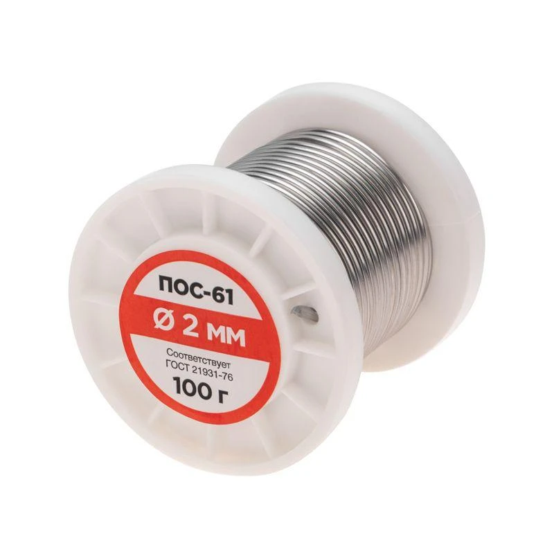 Припой катушка ПОС-61 без канифоли (d2.0мм 100гр) Rexant 09-3123