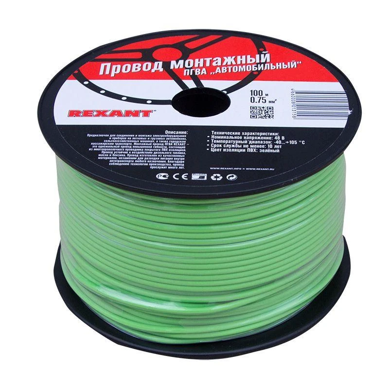 Провод ПГВА 0.75 З бухта (м) Rexant 01-6503