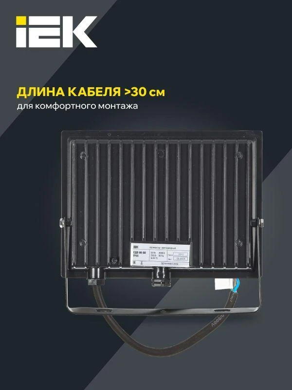 Прожектор светодиодный СДО 06-50 6500К IP65 черн. IEK LPDO601-50-65-K02