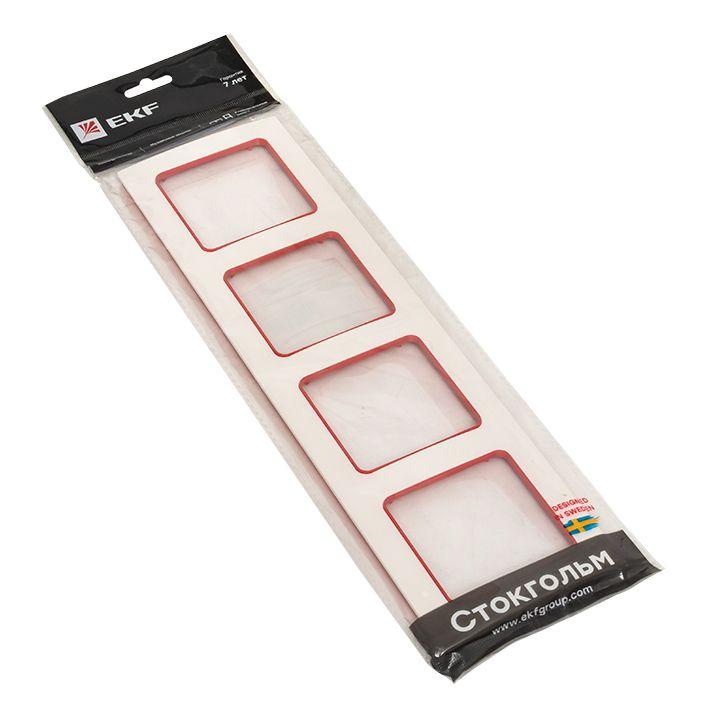 Рамка 4-м Стокгольм бел. с линией цвета красн. PROxima EKF EAM-G-305-10