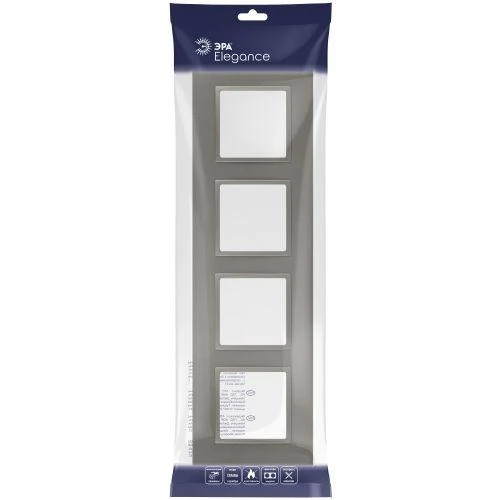 Рамка для выключателей и розеток 4-постовая серии Эра Elegance Classic цвет титан 14-5014-16. Сделана из поликарбоната. Используется только с механизмами серии Эра Elegance. Классический "квадратный" дизайн.