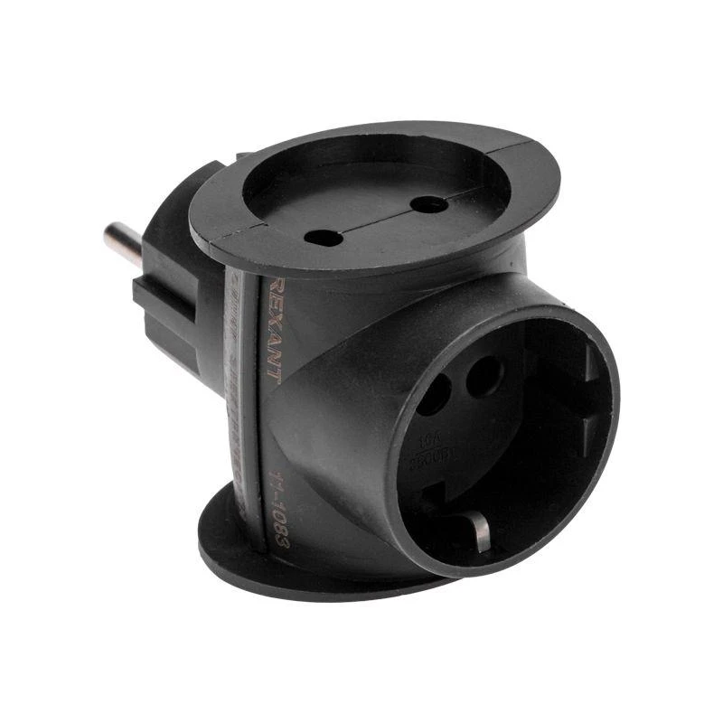Разветвитель 3-м (1-м с заземл.) 16А универс. черн. Rexant 11-1083