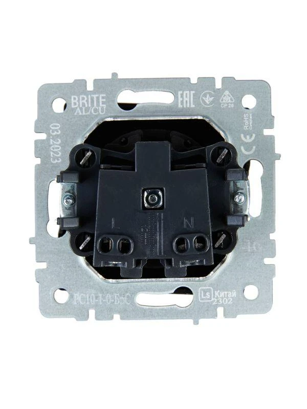 Розетка 1-м СП BRITE РС10-1-0-БрС 10А без заземл. без защ. шторок механизм сталь IEK BR-R10-10-K46