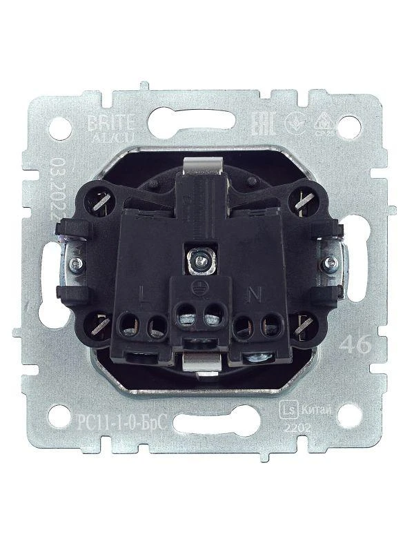 Розетка 1-м СП BRITE РС11-1-0-БрС 16А с заземл. без защ. шторки механизм сталь IEK BR-R11-16-K46