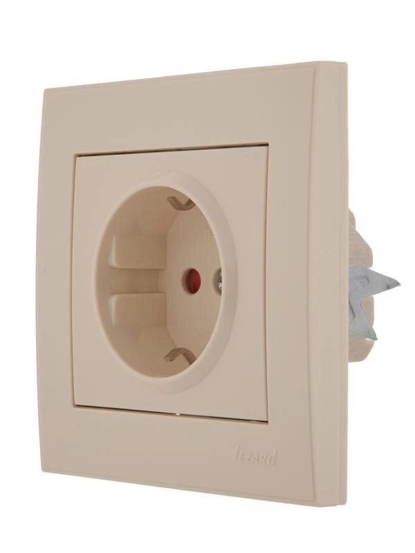 Розетка 1-м СП Rain с заземл. защ. шторки с заземл. керамика крем. LEZARD 703-0303-124