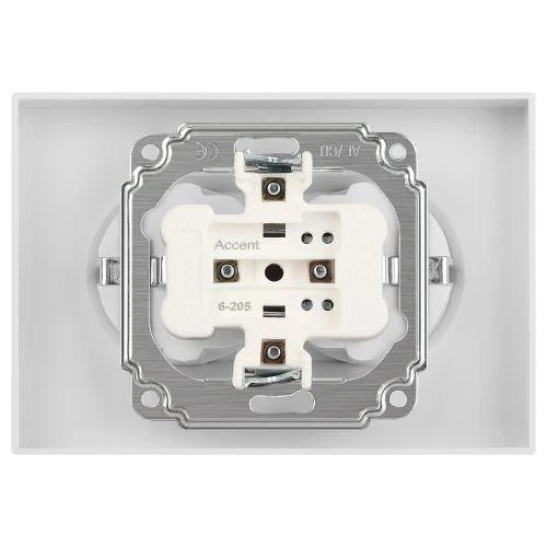 Розетка двойная с заземлением серии Intro Accent скрытой установки цвет белый матовый 6-205-01М. Номинальные характеристики 16А 250В. Выполнена из негорючего термопласта, оснащена винтовыми клеммами. Парные клеммы обеспечивают соединение шлейфом. Монтаж в подрозетник производится и на лапки, и на винты.