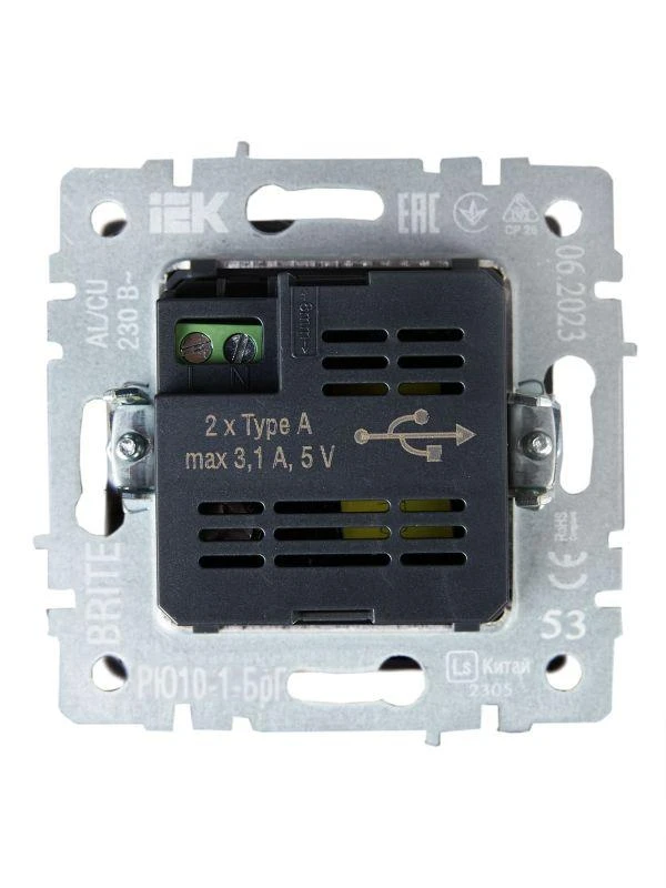 Розетка BRITE USB A+A 3.1А РЮ10-1-БрГ механизм графит IEK BR-U21-D31-K53