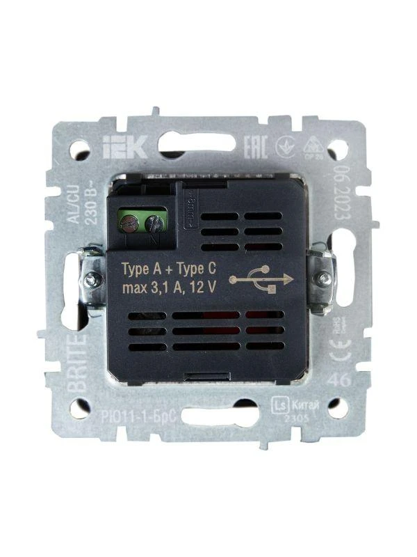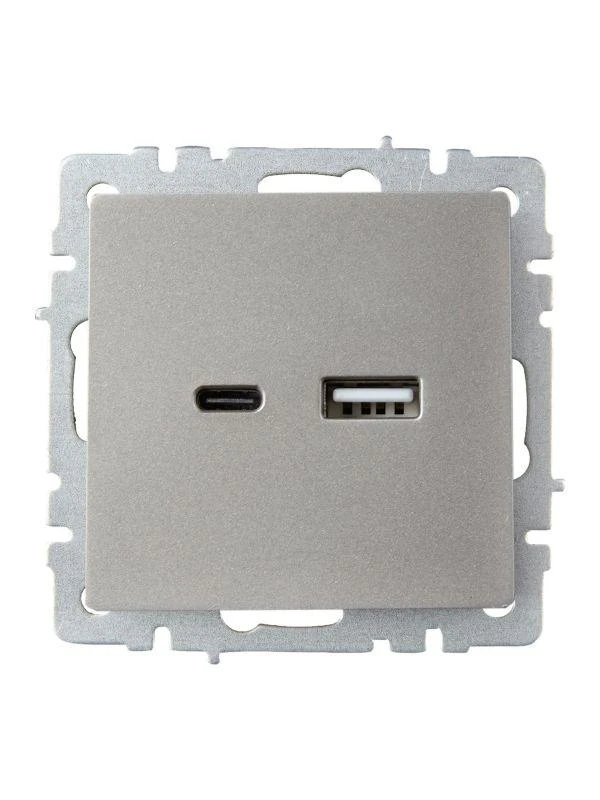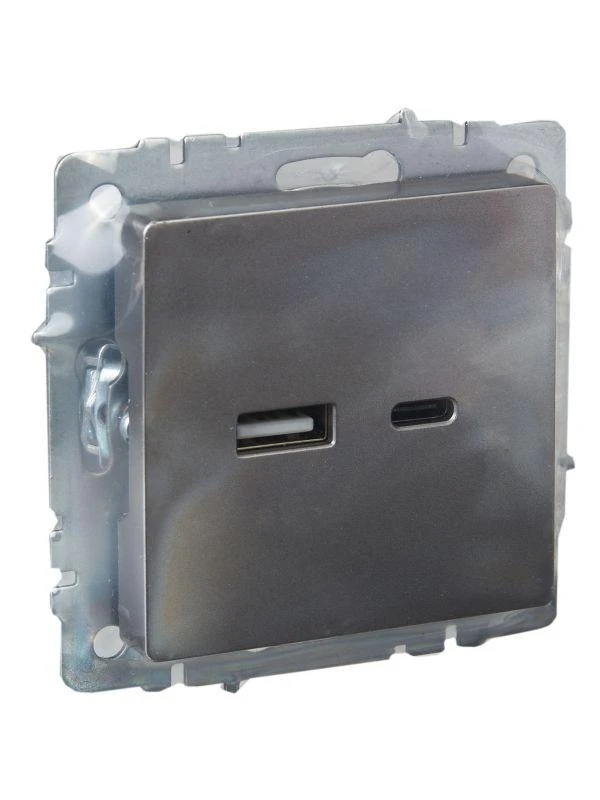 Розетка BRITE USB A+C 18Вт РЮ11-1-БрС механизм сталь IEK BR-U22-018-K46