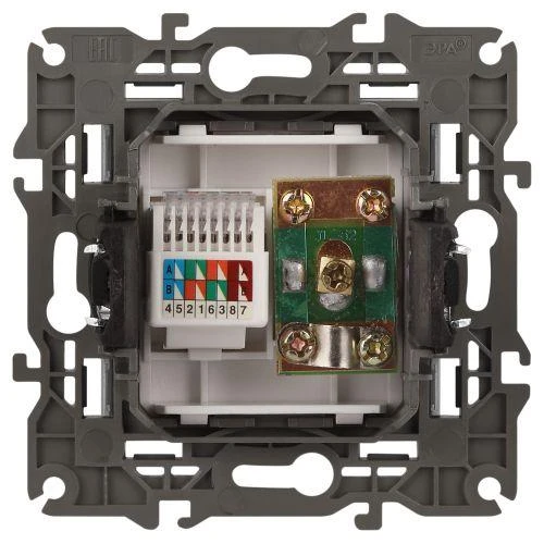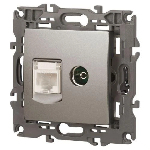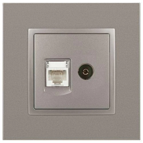 Розетка телевизионная + информационная RJ45+TV серии Эра Elegance цвет титан 14-3110-16. Рамки приобретаются отдельно.