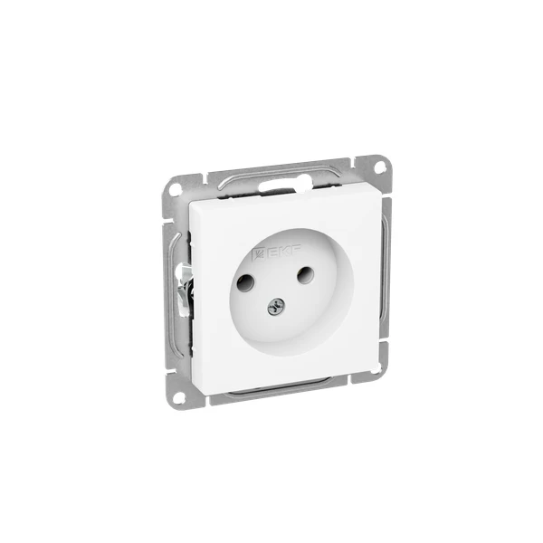Одноместная розетка EKF коллекции «Эпика» в базовой комплектации без заземления и шторок — идеальное решение для стильного и безопасного подключения электроприборов в помещениях, где нет необходимости в усиленной защите.