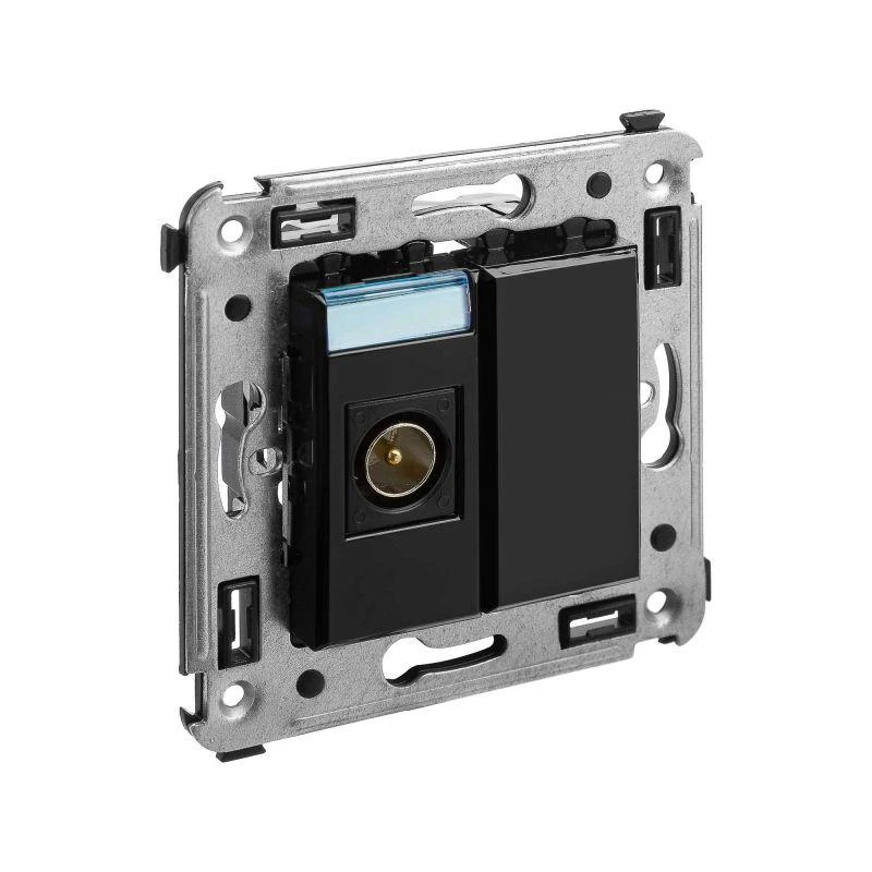 Одиночные телевизионные розетки предназначены для скрытой установки в стенах и применяются для подключения телевизионного кабеля. TV-розетки производства ДКС рассчитаны на частоту до 2400 Гц. Материал – металл, пластик. Пластиковые части устройства имеют цвет "Черный квадрат" – таинственный, темный и глубокий оттенок, несущий отголоски традиций русского авангарда. Количество модулей в изделии – 2. Производитель оставляет за собой право вносить во внешний вид изделия изменения, которые не влияют на его функционал, безопасность и надежность.