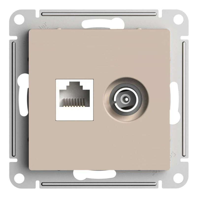 Розетка компьютерная + телевизионная 2-м AtlasDesign RJ45 кат.5E песочн. SE ATN001289