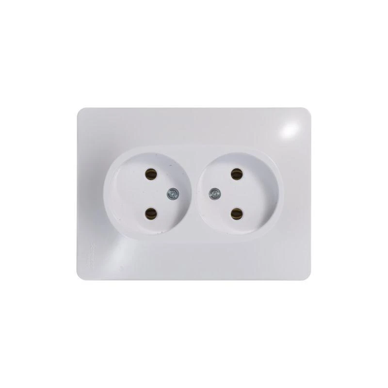 Розетка двойная Schneider Electric Glossa (в сборе, цвет белый) без заземления и без шторок подходит для сетей 250 В, на ток 16 А.