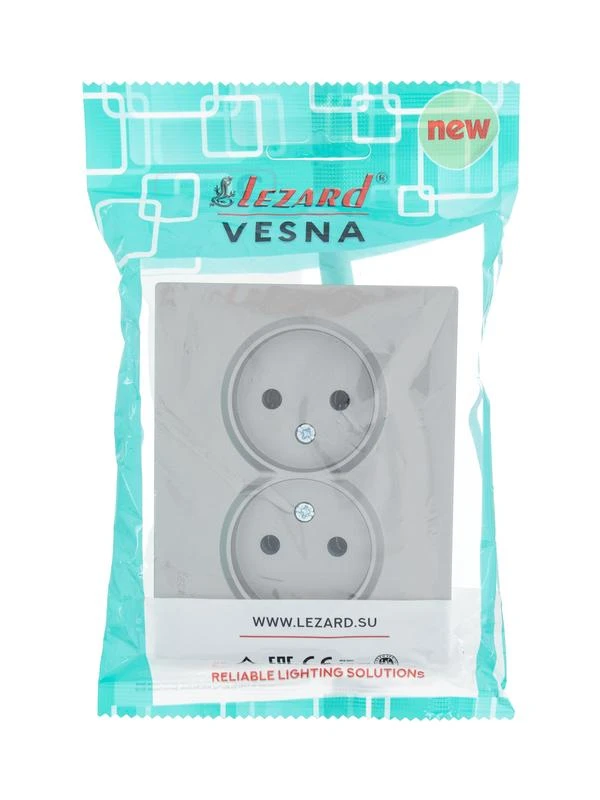 Розетка 2-м СП VESNA без заземл. ПБТ платина LEZARD 742-3500-128B