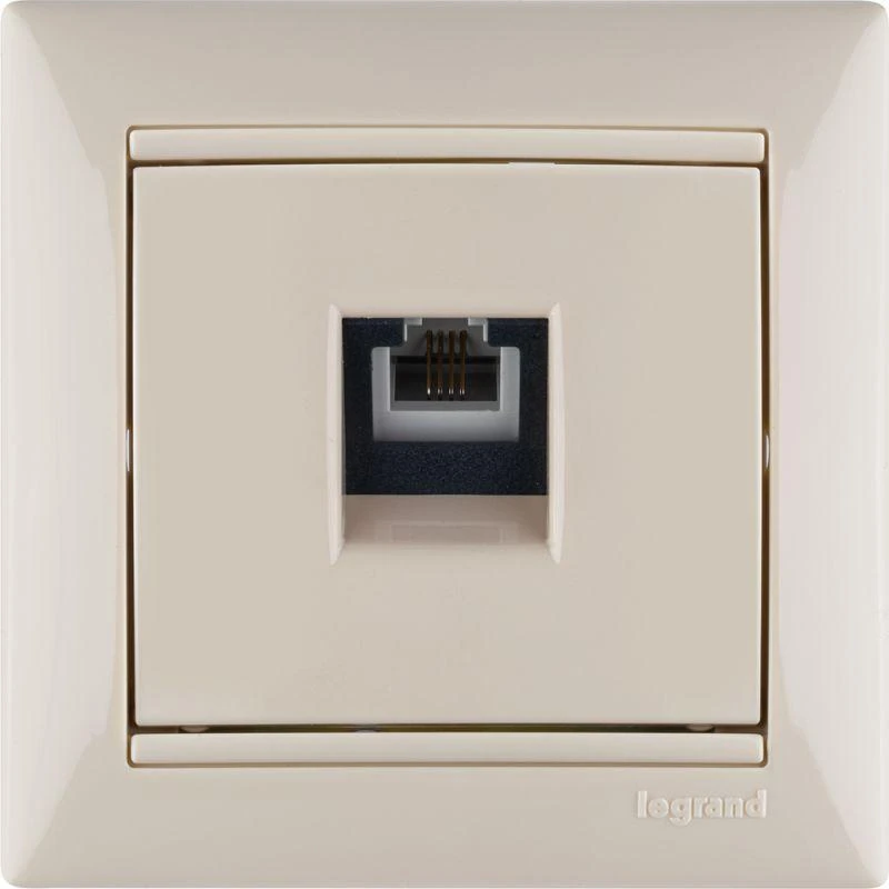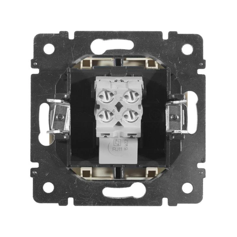 Представляет собой одноместный модуль в виде розетки с одинарным разъемом для подключения телефонного кабеля. Изготовлен из пластика, цвета слоновой кости.