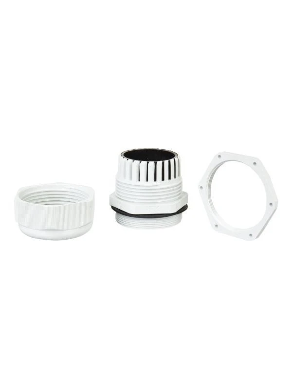 Корпус, гайка уплотнения и фиксирующая гайка выполнены из нейлона. Установка сальника производится при помощи трубного (газового) ключа.