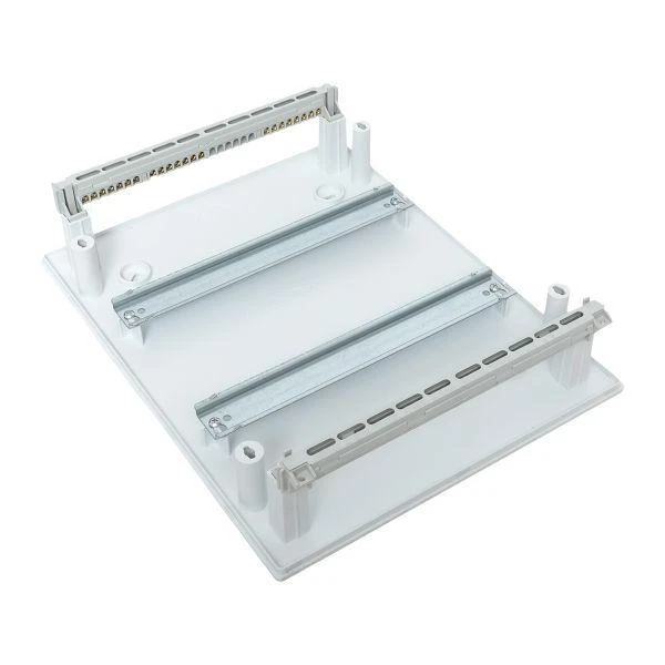 Корпуса пластиковые серии «Unix IP40» предназначены для сборки силовых распределительных и слаботочных щитов. На DIN-рейки устанавливается модульное оборудование. На монтажные платы - антенные разветвители, Wi-Fi роутеры, патч-панели и иное слаботочное оборудование. Щиты устанавливаются на поверхность стены. Ассортимент корпусов с din-рейками представлен размерами вместимостью до 72 модулей, по 12 или 18 модулей в ряду, с белой глухой или прозрачной тонированной дверью, с DIN-рейками или перфлорированными монтажными платами. Особенностью корпусов является плоское основание, упрощающее сборку и подключения внутри, лицевая панель Корпуса изготовлены из качественного глянцевого ABS-пластика, имеют минималистичный дизайн и впишутся в большинство интерьеров.