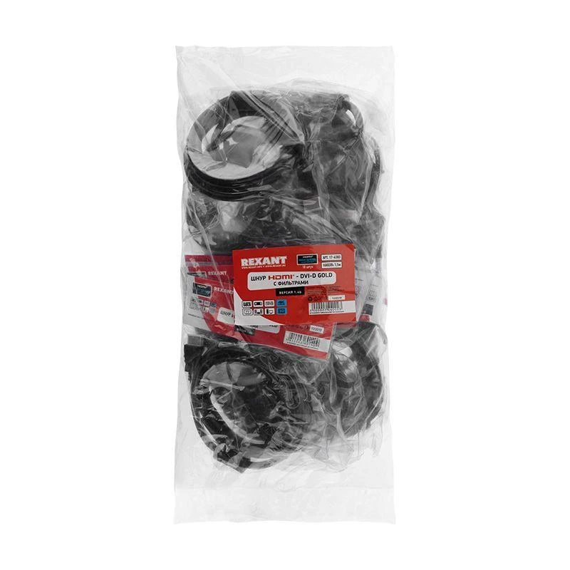 Шнур HDMI - DVI-D gold 1.5м с фильтрами Rexant 17-6303