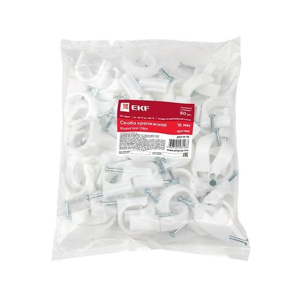 Скоба крепежная круглая с гвоздем d16мм пластик. (уп.50шт) EKF plcn-sr-16